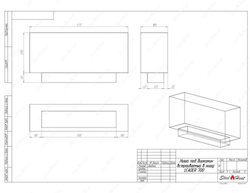 Встраиваемый Биокамин SteelHeat LEADER-SH 700 предназначен для встраивания в глухие ниши из гипсокартона, кирпича, пеноблоков, бетона.
