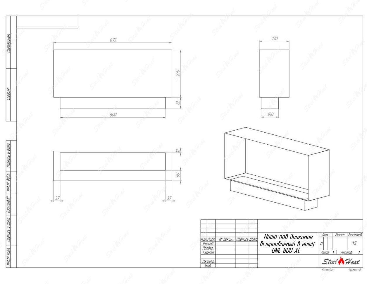 Встраиваемый Биокамин SteelHeat ONE-H 800 XL предназначен для встраивания в глухие ниши из гипсокартона, кирпича, пеноблоков, бетона.