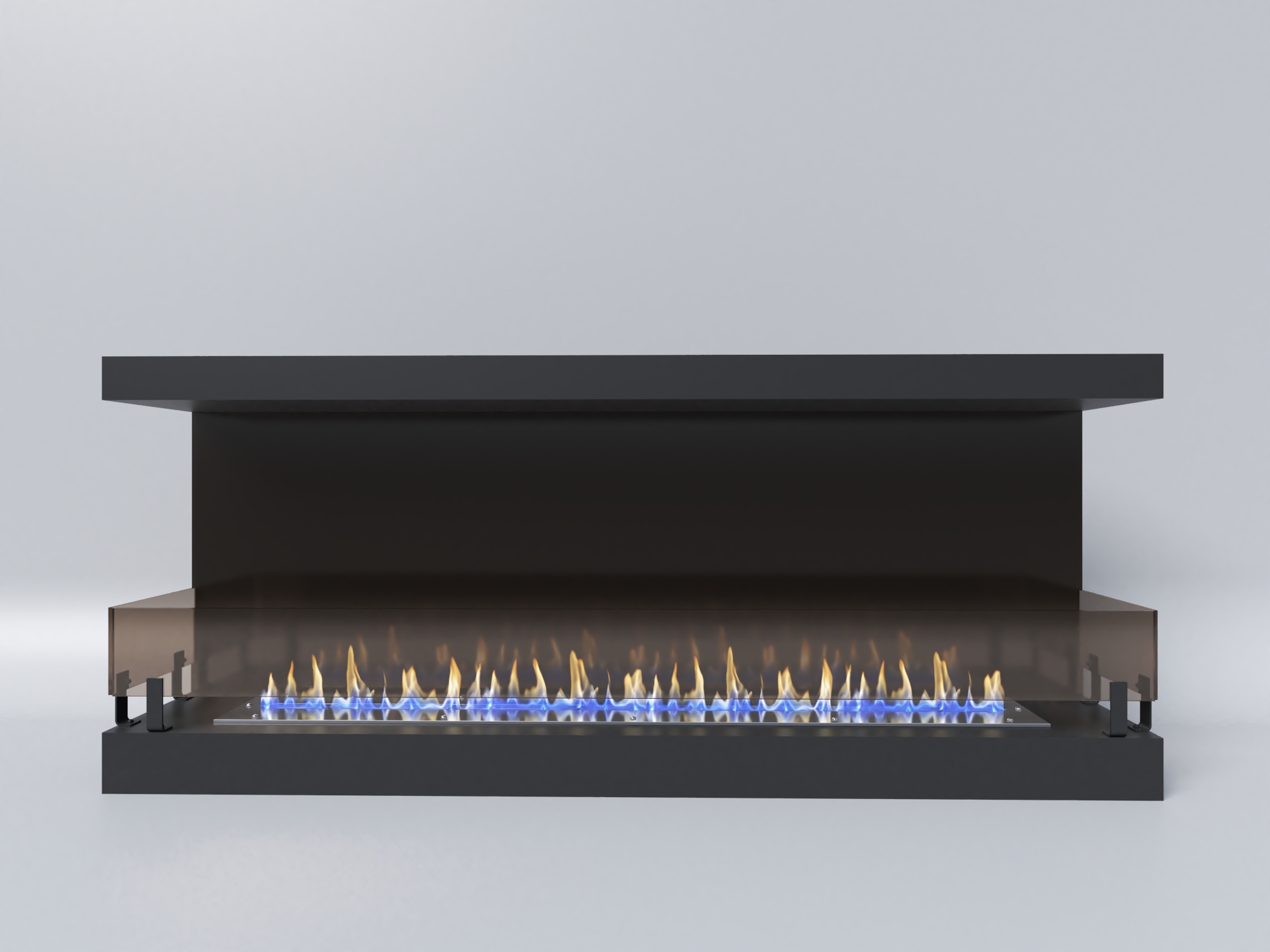 - Защитное стекло убережёт от открытого огня, послужит барьером от попадания различных предметов внутрь камина. Оно устанавливается на фронтальной части камина в специальные пазы, заложенные в конструкции.