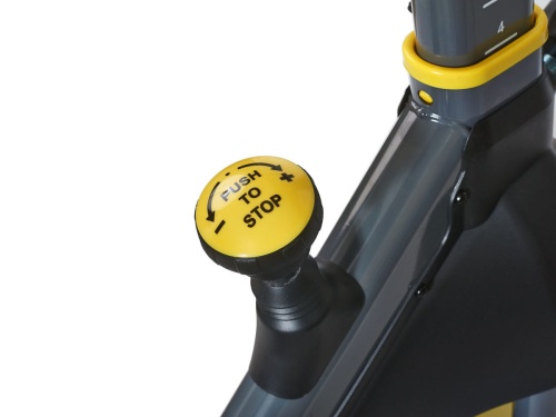 Cпинбайк VictoryFit VF-S200 — тренажер является эффективным помощником при борьбе с лишним весом, а также способствующим укреплению кардиосистемы. Инерционная система нагрузки включает в себя маховик весом 6 кг, предусмотрено изменение уровней нагрузки за счет колодки, прижимающейся к маховику. Наряду с регулировкой рулевого блока, настраивается высота и глубина посадки сиденья. В зависимости от выбранной высоты, расстояние от седла до педалей составит от 75 до 95 см. На руле установлены пульсометры, в комплекте с тренажером поставляется компьютер, отображающий время, скорость, дистанцию, затраченные калории, общее пройденное расстояние, пульс